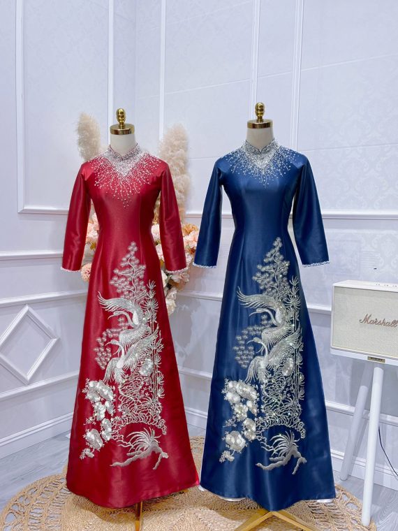 Áo dài bà sui big size dành cho người mập kết đá pha lê đuôi công