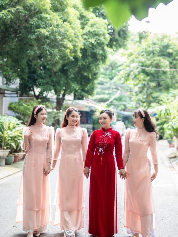Đối với những bạn có thân hình mảnh mai hay gầy đến những bạn có thân hình nhỏ bé hay hơi mũm mĩm cũng đều thích hợp với áo dài bưng cách tân. Vì nó tạo cái nhìn dễ thương và duyên dáng hơn cho hình ảnh của đội hình bưng quả trong ngày cưới của bạn.